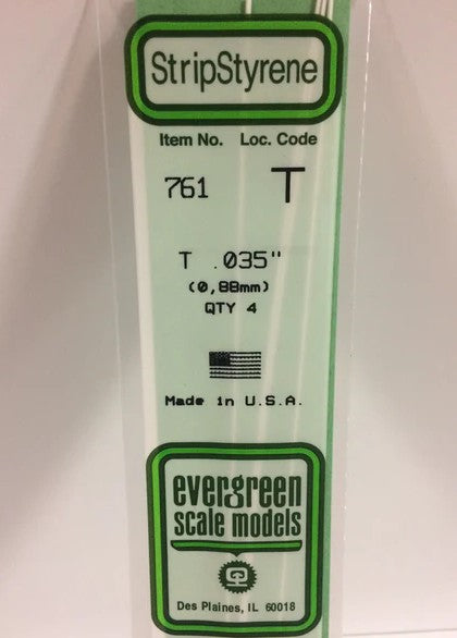 Evergreen 761 T Channel .092" (2.3mm) Strips (4pcs)