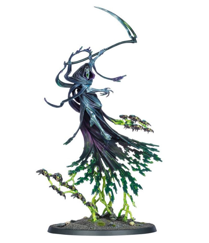 This multipart plastic kit builds a C'tan Shard of the Nightbringer, the most dangerous of the star god fragments, for your Necrons army in games of Warhammer 40,000. While no longer able to unmake the stars themselves, it can still reap a terrible toll of enemies upon the battlefield with its powerful scythe, and its gaze can wither and weaken even the mightiest of foes. The Shard of the Nightbringer is ideal for getting stuck in where the fighting is thickest, rewarding an aggressive playstyle. It’s also a stunning centrepiece miniature for any collection, and painters will love the digital fragmentation of the robes, swarm of scarabs, and living metal body.