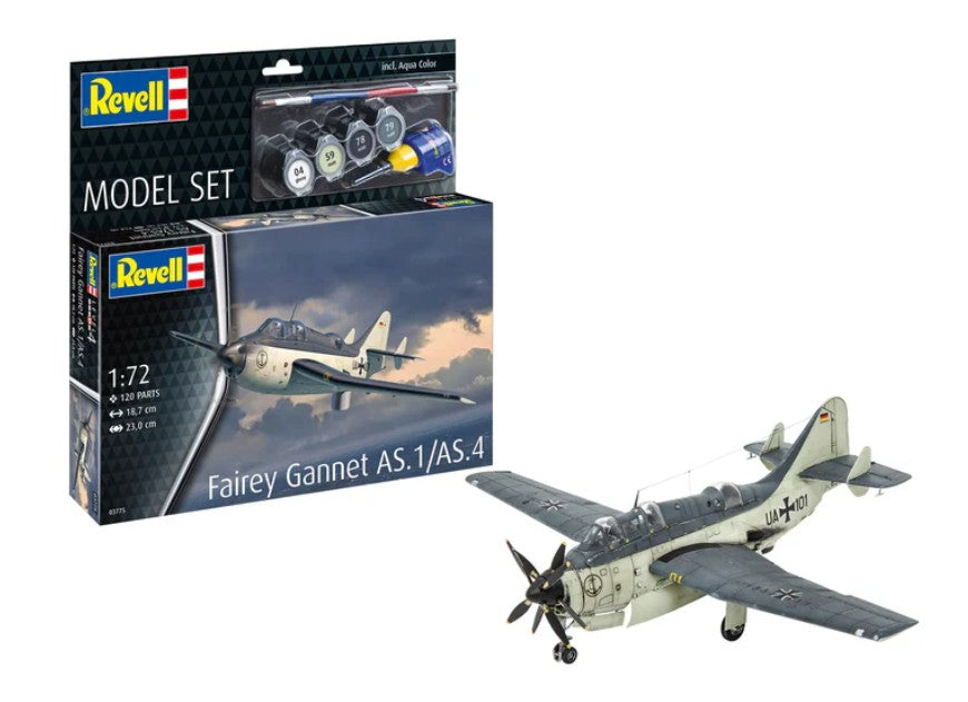 Model kit of the Fairey Gannet AS.1/AS.4. The Gannet was a carrier-based fighter aircraft used for anti-submarine warfare during the Cold War. The aircraft was known for its distinctive appearance and unique capabilities. - Detailed cockpit and weapons bay - Positionable control surfaces - Open/closed canopies - Please note: No folding wing. Authentic representation of the following versions: - Fairey Gannet AS.1, XA334, 816 Squadron, Royal Australian Navy. HMAS Melbourne, 1967 - Fairey Gannet AS.1, XA334, 825 Squadron, Royal Navy, 1957 - Fairey Gannet AS.4, UA-101, Naval Air Wing 2, German Navy, 1958. Basic paints, glue, and a brush are included.
