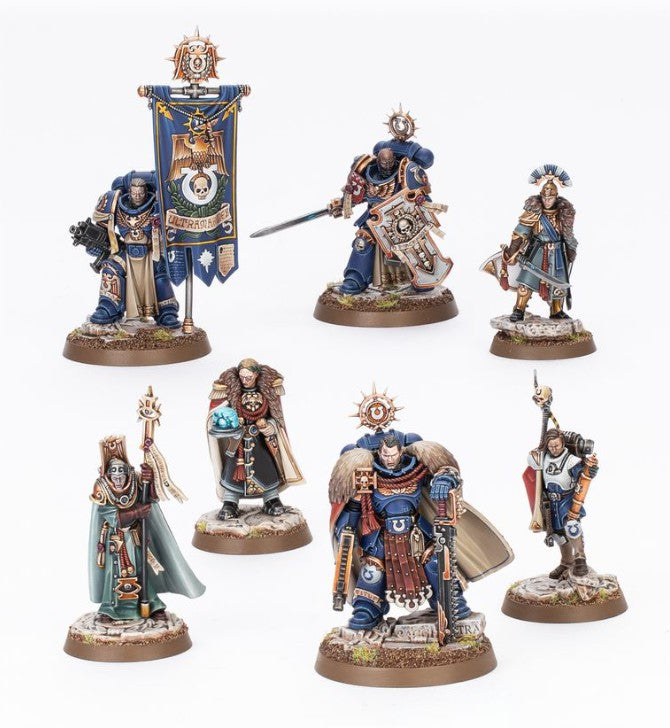 In addition to these tried and true warriors, you'll find a handful of other figures that are vital to Titus's plans for the Five Hundred Worlds. Gaius Silva commands the flagship of Titus's fleet, and Dainal Kornelius is the chief Astropath. Aemelia Minervas is a respected Legatus of the Ultramar Defence Auxilia, and Lucia Vestha is a peerless negotiator. None are strangers to battle. If you're looking for a fearless leader for your Ultramarines, look no further. This kit also gives you a handful of fascinating characters for an exciting painting project.
