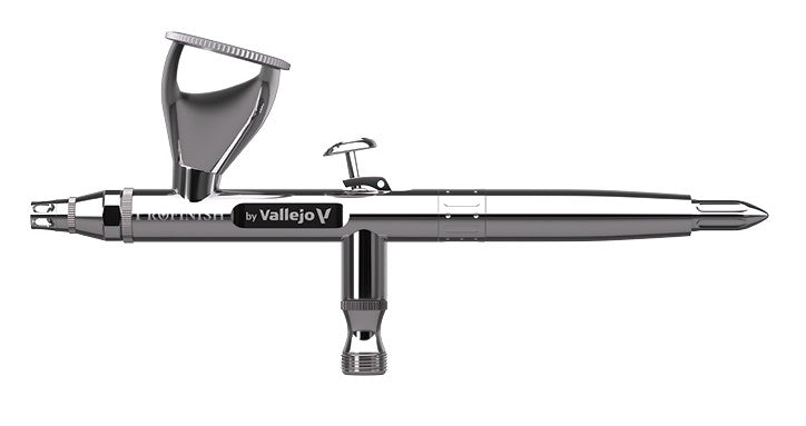 The Profinish airbrush features a stylish chrome design with an innovative needle travel regulator and paint control, the ideal concept for artists seeking precision and versatility. It includes an intuitive independent dual-action function by gravity system. Floating nozzle, with an easy disassembly and cleaning process. Includes a needle/nozzle set of 0.2 mm and 0.3 mm, three screw-on cups of 3 ml, 9 ml and 15 ml and a quick connection sleeve to the hose.
